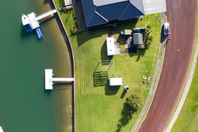 Use as a glamping site before building your dream waterways home. Concept design available for a four-bedroom, three-bathroom home over two levels with a courtyard, open plan living and double garage, so you can see the scope that this site offers.